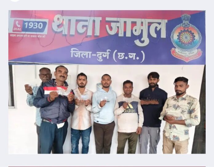 11 दिसंबर 2025 गुरुवार को मुखबिर से सूचना मिली थी कि सुरडुंग नाला किनारे कुछ व्यक्ति खुले स्थान पर रुपयों का दांव लगाकर 52 पत्ती ताश से जुआ खेल रहे हैं। सूचना पर तत्काल कार्रवाई करते हुए जामुल पुलिस टीम ने मौके पर घेराबंदी कर रेड की, जहां से सात आरोपियों को पकड़ा गया।
