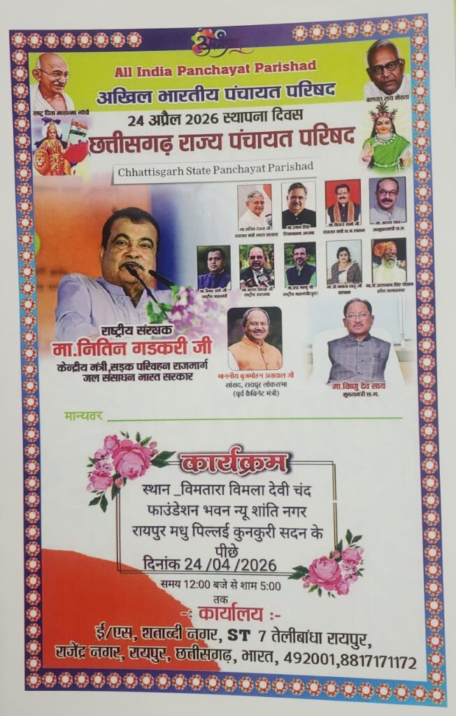 छत्तीसगढ़ राज्य पंचायत परिषद द्वारा 24 अप्रैल को रायपुर में आयोजित होने वाले इस ऐतिहासिक सम्मेलन में केंद्रीय मंत्री नितिन गडकरी, प्रदेश के मुख्यमंत्री, विधानसभा अध्यक्ष, मंत्रीगण, सांसद, विधायक एवं विभिन्न राज्यों के पंचायत प्रतिनिधियों की उपस्थिति प्रस्तावित है।