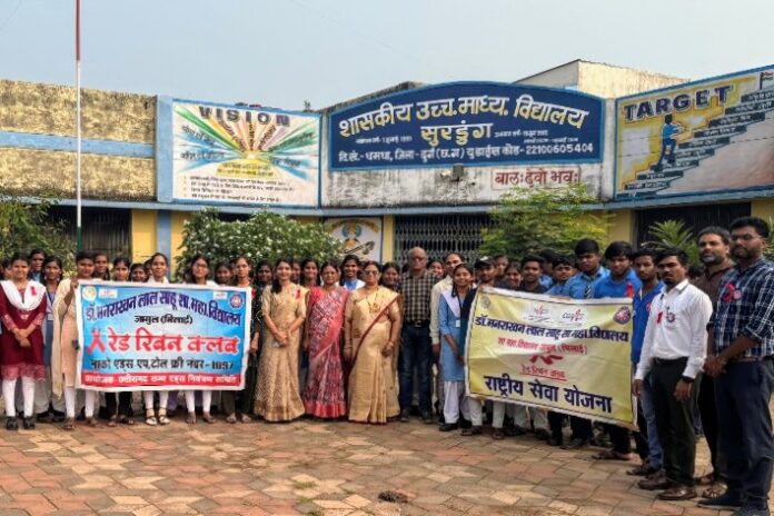 जामुल: डॉ. मनराखन लाल साहू शासकीय महाविद्यालय जामुल के राष्ट्रीय सेवा योजना (रासेयो) और रेड रिबन क्लब के संयुक्त तत्वाधान में स्वयंसेवकों द्वारा 16 अक्टूबर 2025 गुरुवार को शासकीय उच्चतर माध्यमिक विद्यालय सुरडुंग में एक दिवसीय एड्स जागरूकता अभियान सफलतापूर्वक आयोजित किया गया। यह अभियान महाविद्यालय के प्राचार्य डॉ. रमाशंकर सिंह के कुशल निर्देशन में सम्पन्न हुआ।