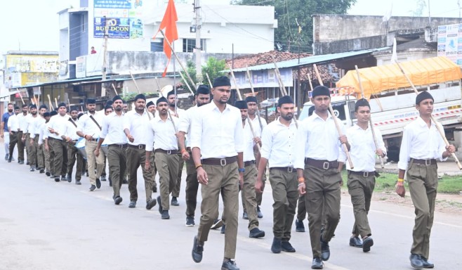सी. जी. प्रतिमान न्यूज / दुर्ग : विजयदशमी पर्व पर राष्ट्रीय स्वयंसेवक संघ दुर्ग चिखली शाखा के स्वयंसेवकों ने पथ संचालन किया. जो बाजार चौक से होते हुए ग्राम के विभिन्न गलियों में भ्रमण करते हुए बजरंग चौक चिखली पहुंचे.