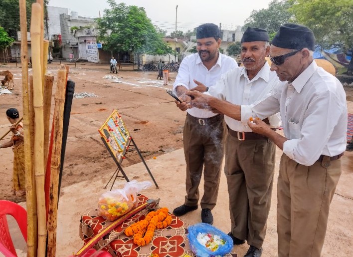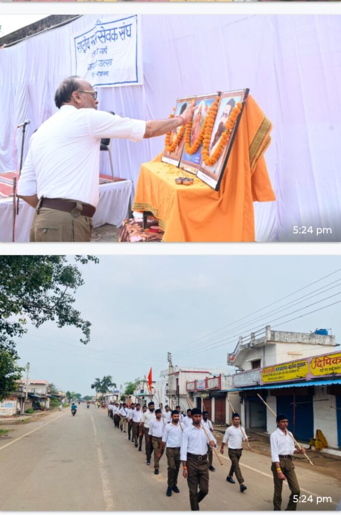 कार्यक्रम के मुख्य वक्ता विभाग सह कार्यवाह दिलेश्वर उमरे ने बताया कि संघ की स्थापना 1925 में विजयादशमी के दिन डॉ केशव बलिराम हेडगेवार ने नागपुर में की आज संघ 100 वर्ष की यात्रा में अनगिनत पड़ाव देखे है l