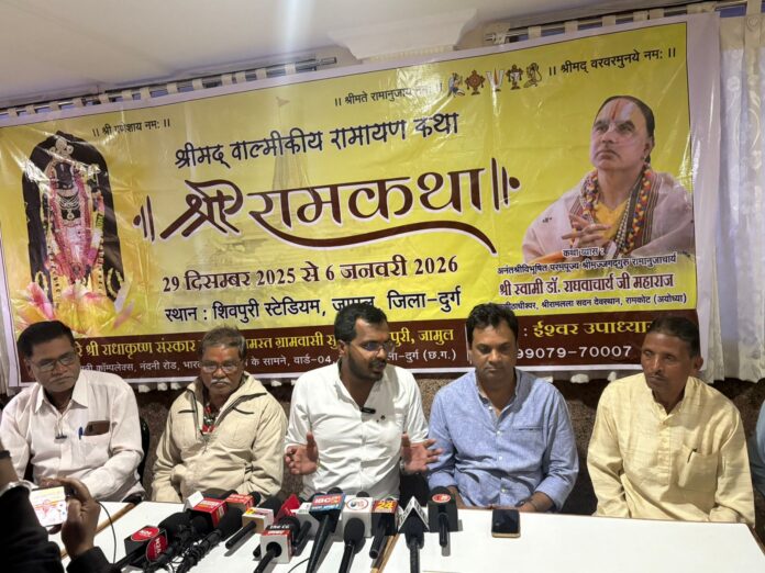 सी.जी. प्रतिमान न्यूज़ 20 दिसंबर : जामुल / श्री प्यारेलाल संस्कार मंच द्वारा छत्तीसगढ़ की धर्मनगरी जामुल में सनातन चेतना के एक विराट अध्याय को साकार करने जा रही है। शिवपुरी स्टेडियम, जामुल में 28 दिसंबर 2025 से 06 जनवरी 2026 तक आयोजित होने वाले भव्य–दिव्य श्रीराम कथा महोत्सव की समस्त तैयारियाँ अब निर्णायक पूर्णता के चरण में पहुँच चुकी हैं।