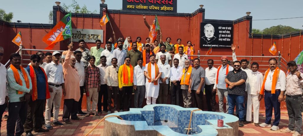 अहिवारा / भारतीय जनता पार्टी के 46वें स्थापना दिवस पर सोमवार 6 अप्रैल को भाजपा मंडल अहिवारा में अटल परिसर पर अटल बिहारी वाजपेयी की प्रतिमा में माल्यार्पण कर वाईक रैली निकाली। अटल चौक पर अटल जी के प्रतिमा की पूजा अर्चना कर ध्वजारोहण किया गया। भाजपा के स्थापना दिवस अहिवारा मंडल के कार्यक्रम प्रभारी भाजपा भिलाई जिला उपाध्यक्ष व पूर्व नगर पालिक परिषद अहिवारा अध्यक्ष नटवर ताम्रकार ने कहा यह स्थापना दिवस विशेष इसलिये है कि भारत और छत्तीसगढ़ से नक्सलवाद खत्म हो गया है। यह काम केवल भारतीय जनता पार्टी ही कर सकती है।